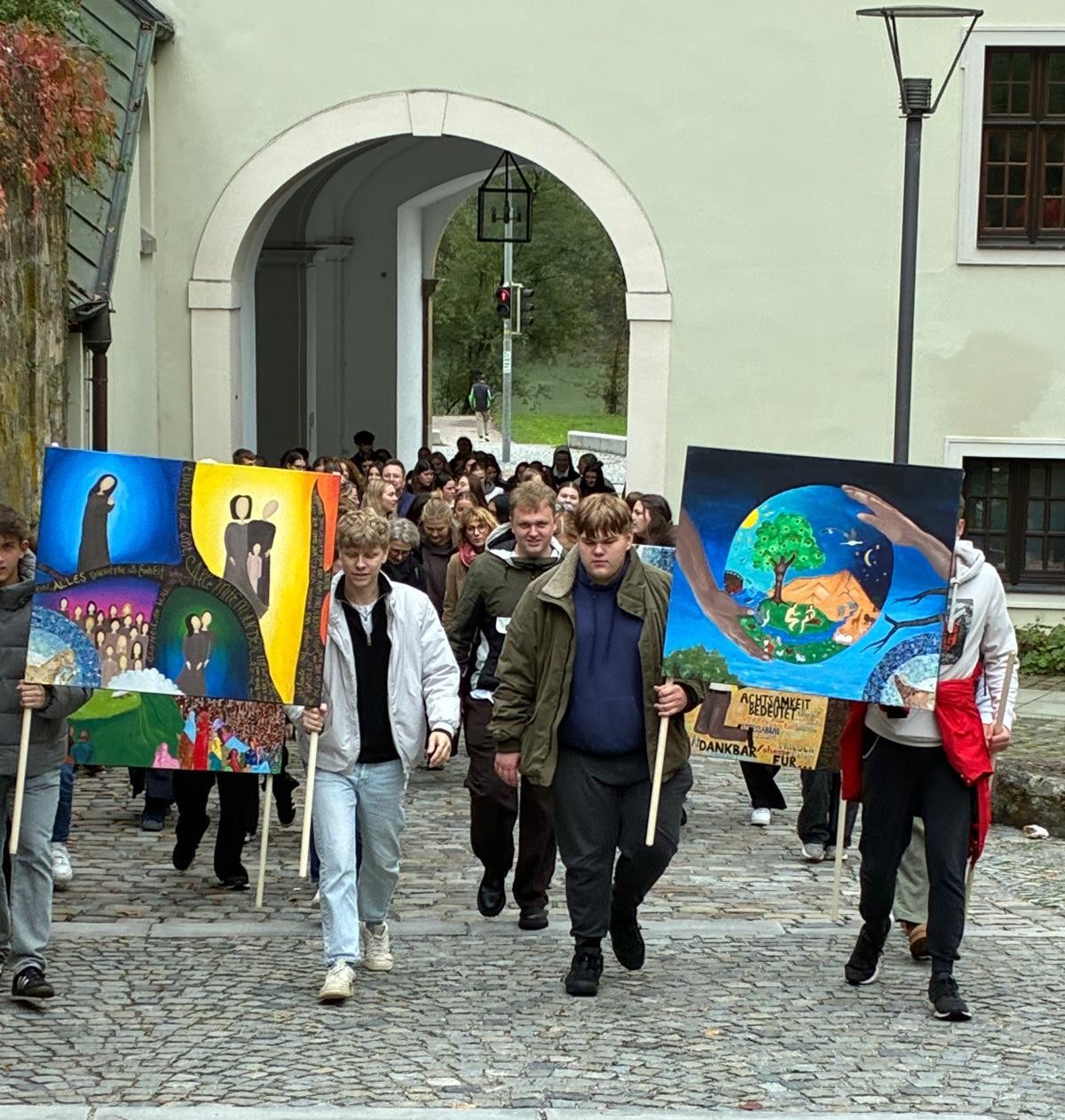 Passanten blieben stehen, hörten zu und beteiligten sich spontan an Gebeten. Der Abschluss in der Nikolakirche war geprägt von einem bewegenden Moment: Die einzelnen Bilder der Gruppen wurden zu einem großen Gesamtbild zusammengesetzt – ein starkes Symbol für die Einheit von Schule, Kloster und Gemeinschaft.